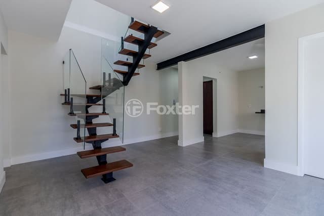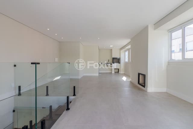 Cobertura , 100% reformada com 2 suítes , vaga de garagem coberta e prédio com elevador no Bairro auxiliadora. No primeiro piso, living, cozinha americana, lavabo, enorme área de serviço e duas suítes. Todo o piso do living; cozinha e área de serviço é composto por porcelanato 120X120 da Porto Belo. As duas suítes possuem piso vinílico. A escada, que dá acesso ao piso superior é confortável e muito bonita. No segundo piso, o amplo salão interno também é revestido pelo piso porcelanato 120X120 PORTO BELO, este salão possui, também, lavabo, churrasqueira e lareira. O terraço de 30m², que possui saída para um chuveiro, é revestido por porcelanato 90X90, também da marca PORTO BELO. Toda a cobertura possui orientação solar NORTE, com exceção de uma suíte, que é virada para o LESTE. A cobertura possui um baixo custo condominial e o proprietário estuda imóvel como parte de pagamento. Agende sua visita