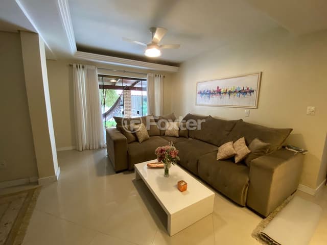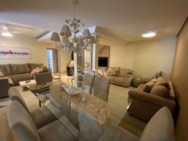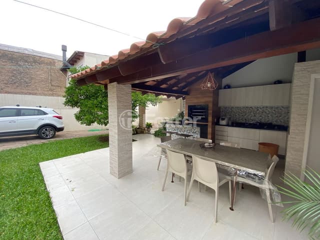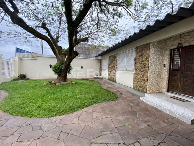 São duas casa em um amplo terreno, casa da frente composta por 2 dormitórios, banheiro social, cozinha, amplo living para dois ambientes e espaço gourmet. Nos fundos possui um sobrado de 3 dormitórios, sendo 1 suíte com closet, amplo living para três ambientes com lareira, ,banheiro social, lavabo, 2 gabinetes, mezanino, cozinha, área de serviço. separada. Garagem para 3 carros cobertos e 3 descobertos. Possui amplo pátio, conta com área de lazer com churrasqueira externa e jardim. Vale a pena visitar! Não pegou enchente.