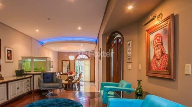 FOXTER C&A IMOBILIARIA VENDE! Residência diferenciada, semi mobiliada, com diversos itens de construção e decoração exclusivos!! são 2 pavimentos distribuídos da seguinte forma: 1) térreo: living para 3 ambientes, sala de jantar com churrasqueira interna, todo piso em tabuão, gabinete, lavabo, jardim de inverno com fonte de água c/iluminação; 2) 1° andar: 3 dormitórios, sendo 1 suíte Master com closet, banheiro com piso aquecido, sacada, estar intimo ou sala de televisão, banheiro social com piso aquecido, e 2 dormitórios com sacada. Área de serviço com lavanderia, dependência de empregada c/banheiro auxiliar e deposito. Amplo pátio com piscina de concreto e azulejos (32 mil litros = 8mx4m), jardim c/paisagismo e bela iluminação noturna. Área de lazer junto a piscina, com salão de festas, mesa de bilhar, e churrasqueira fogão e forno á lenha. Garagem para 4 carros. Paredes duplas de tijolos maciços que mantêm a temperatura e acústica agradável, aproximadamente 397m2 de área construída em terreno de 15,80m x 36,00, em privilegiada localização no bairro, próximo a todos os recursos. Aceita Financiamento/FGTS e estuda imóvel como parte de pagamento.